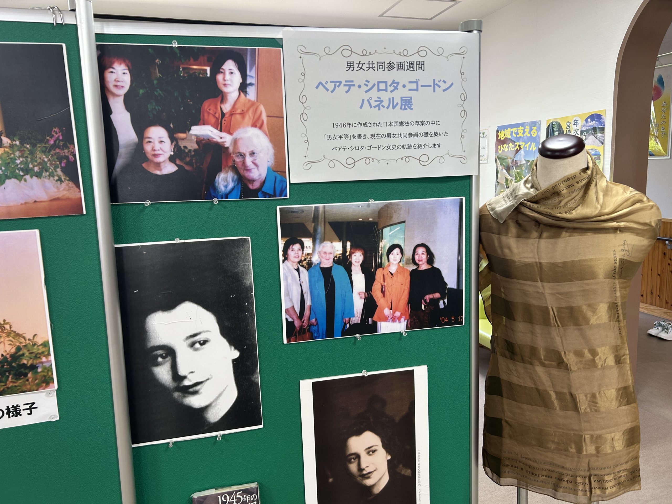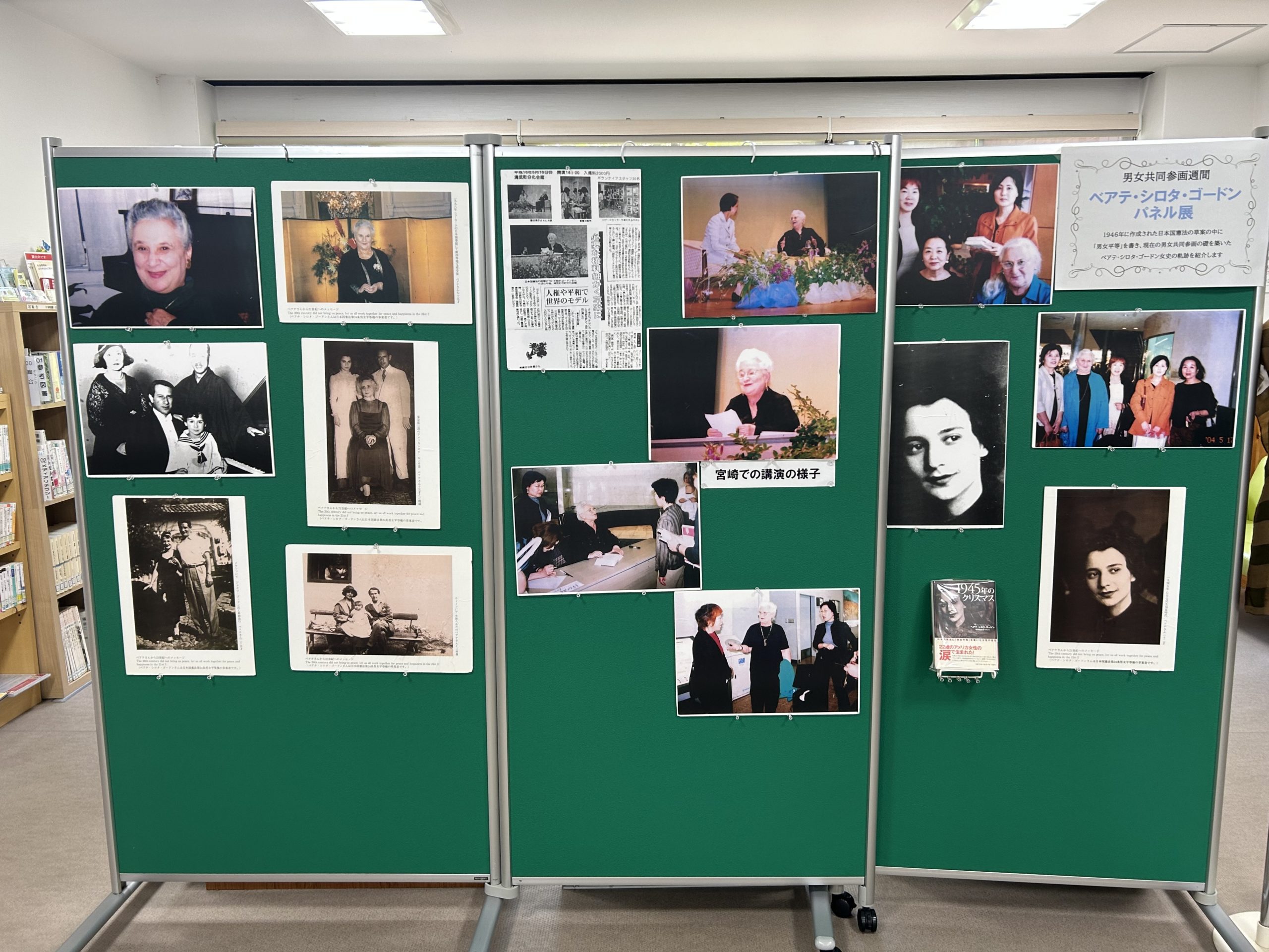 そして、恒例となりました映画「私は男女平等を憲法に書いた」の上映会(花山手会場6/23、パレット会場6/29)に伴い、パレット図書スペースにて、ベアテ・シロタ・ゴードン氏パネル展を実施しています。