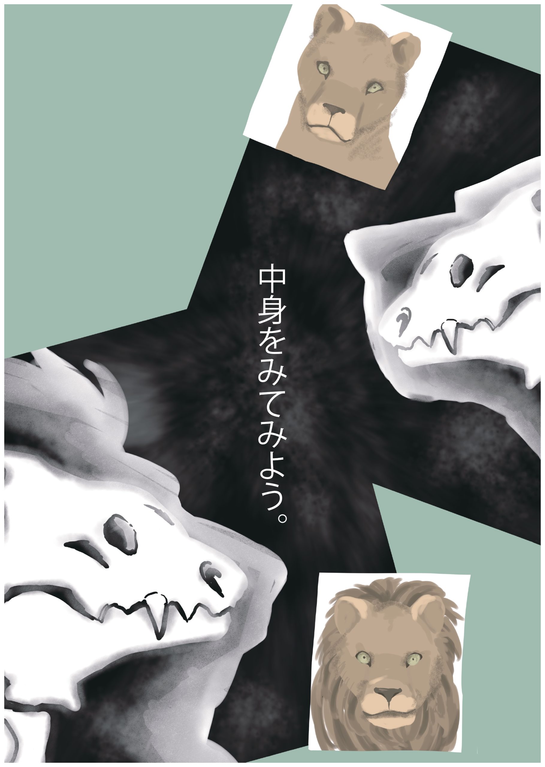 見た目が性別で大きく異なるライオンを主役に「男女という枠ではなく個人として人をみてみよう」というテーマで描きました。 レントゲンで透けるライオンの骨格をどちらも同じにすることで男女差がないことを表現しました。 また、ストレートなメッセージにすることで意味を伝わりやすくしました。