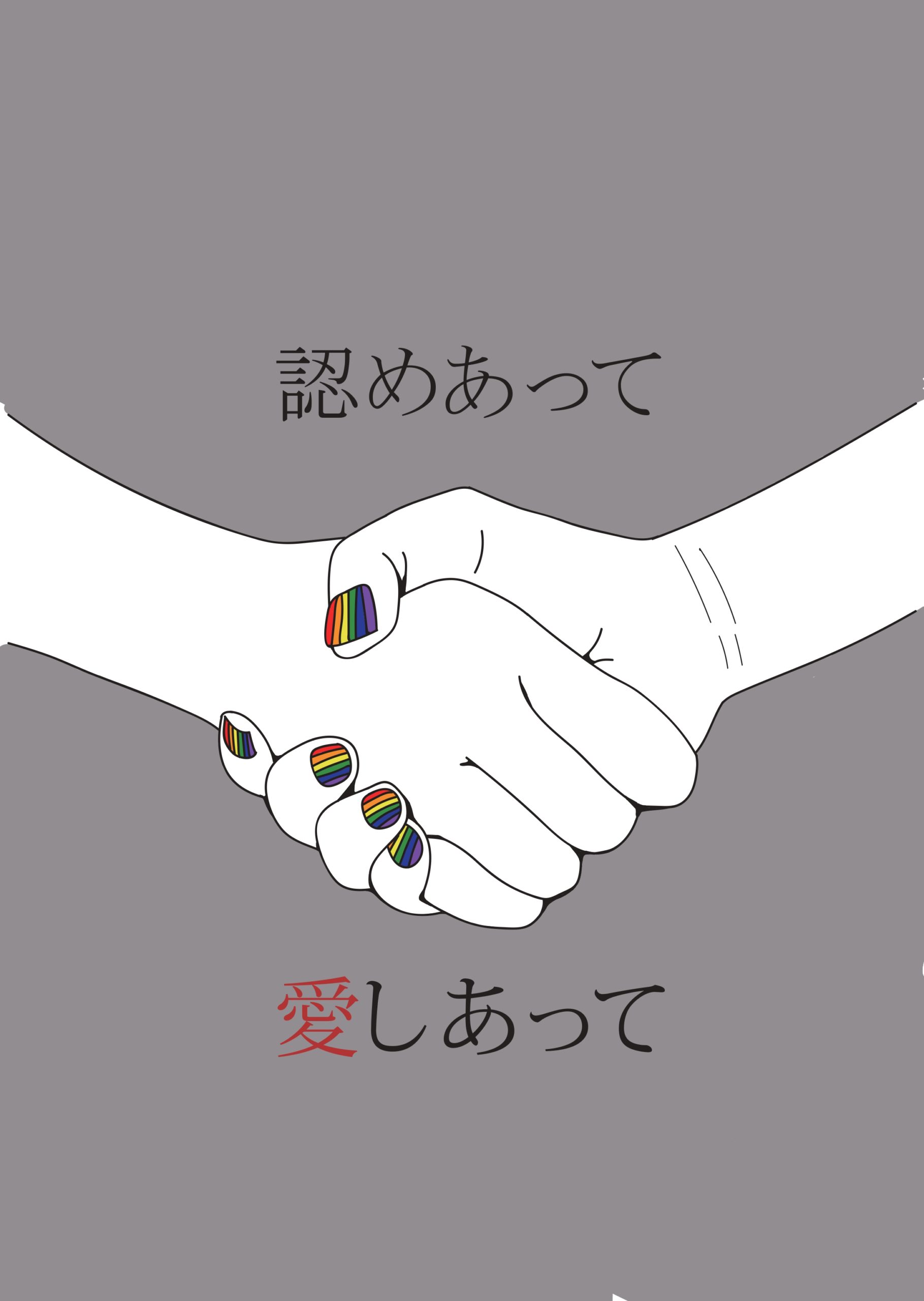 この作品は法律や制度を訴える以前に性別の違いがある人を否定せずに認め合ってほしいこと。 「愛し合うことは自由なんだ。」 ということを題材に制作しました。