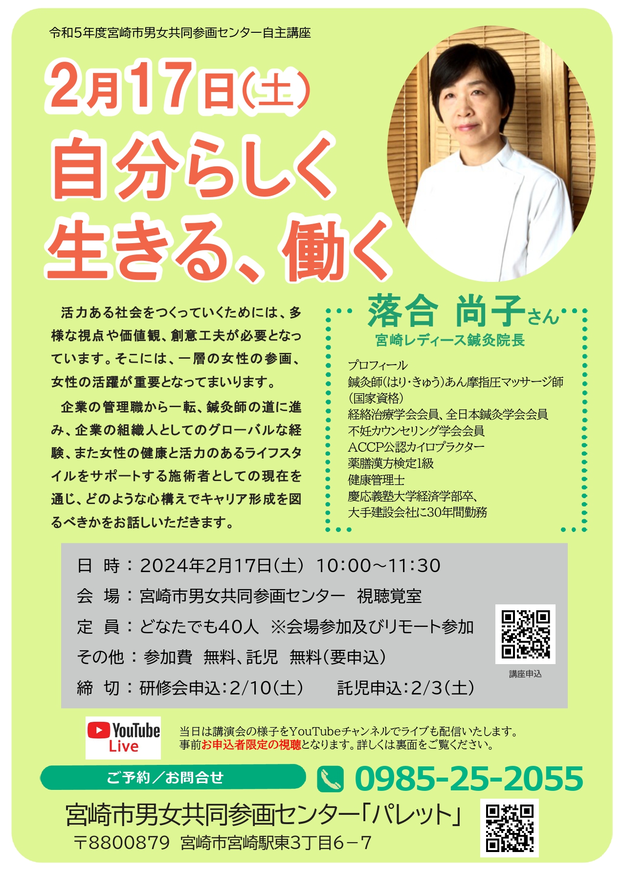 ●講師:落合 尚子さん(宮崎レディース鍼灸院長)