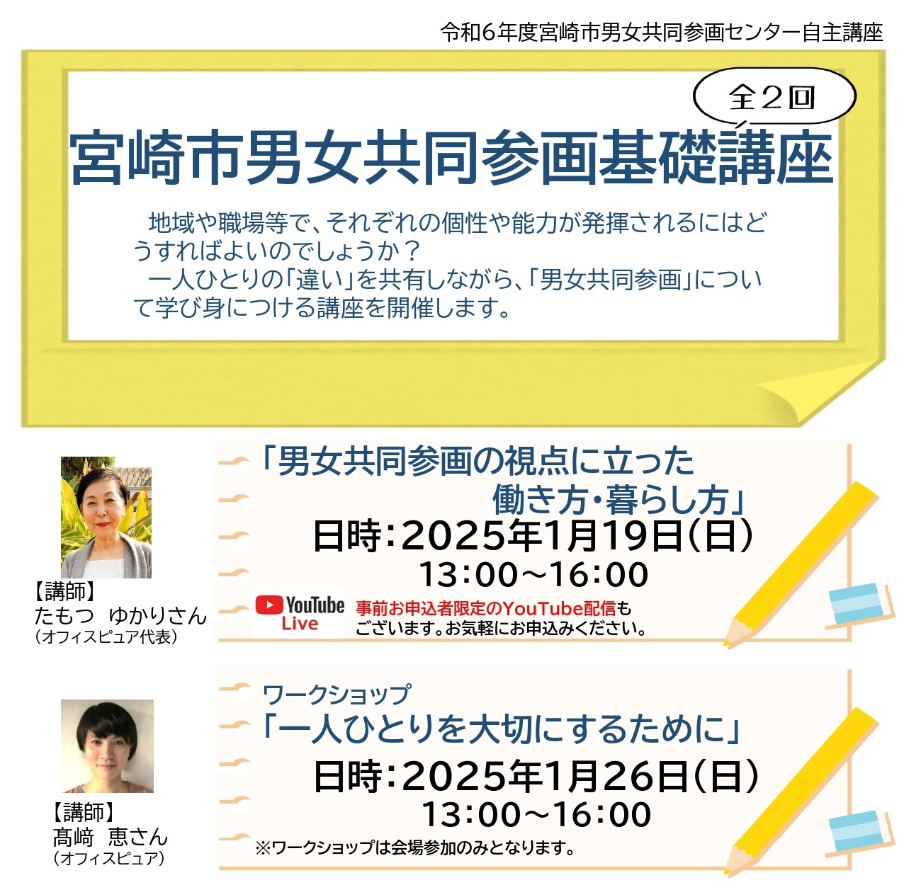 R7.1/19、1/26 令和6年度宮崎市男女共同参画基礎講座(全2回)