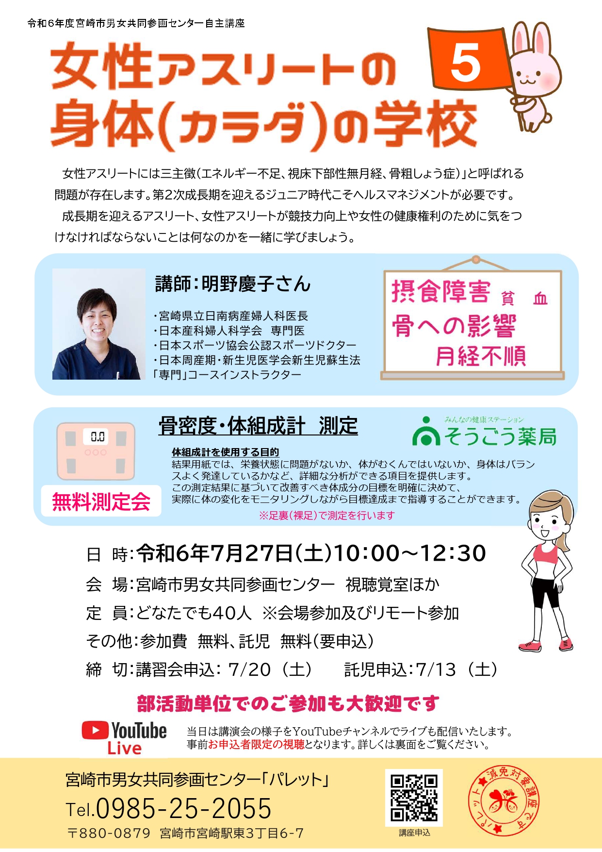 近年、スポーツにおける女性の活躍は目覚ましく、7月26日からは、パリ2024オリンピック競技大会が開催されます。また、宮崎県では2027年に国民スポーツ大会(国民体育大会)の開催を控えており、多くの女性アスリートが大会出場へ向けて練習に励んでいます。