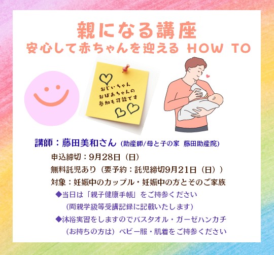 R7.10/5 親になる講座「安心して赤ちゃんを迎えるHOW TO」