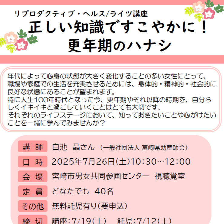 R7.7/26 リプロダクティブ・ヘルス/ライツ講座「正しい知識で健やかに!更年期のハナシ」