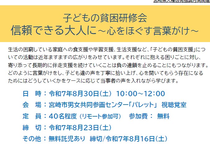 R7.8/30 子どもの貧困研修会「信頼できる大人に~心をほぐす言葉がけ~」